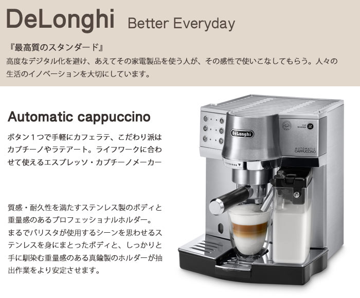 【ポイント15倍】《DeLonghi/Y》デロンギ エスプレッソ・カプチーノメーカー オートマティックカプチーノ カップウォーマー機能付き エスプレッソマシン エスプレッソメーカー カフェラテ ミルクの泡立ても可能 キッチン家電 ec860m